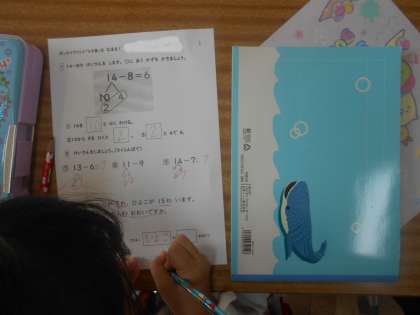 ばっちりプリントの「ひきざん」に挑戦しています。