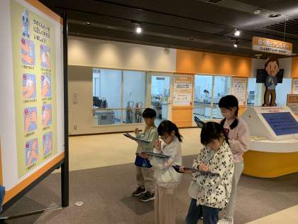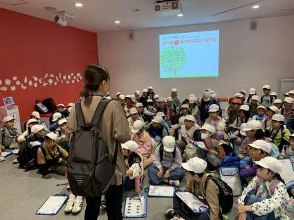 施設での活動内容や、まわる時のきまりやマナーについてお話を聞いています。