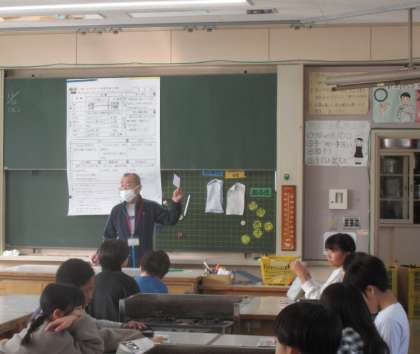 5年生の家庭科では、みそ汁とご飯の調理実習に向けて学習していました。