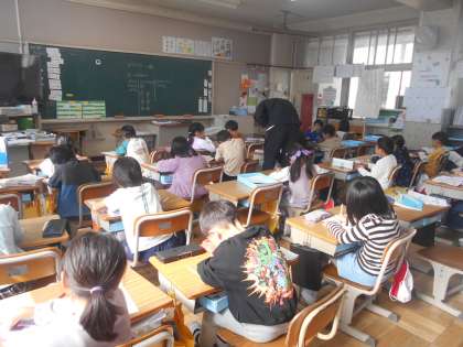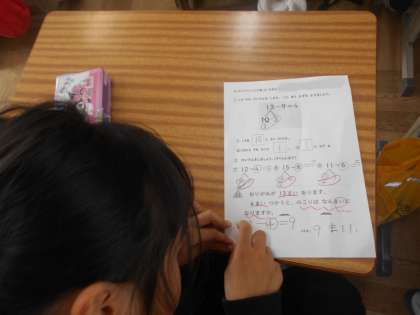 最初に「ばっちりテスト、ひきざん」に取り組んでいます。