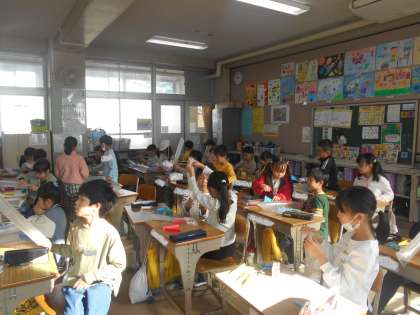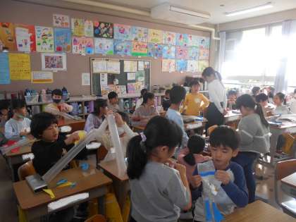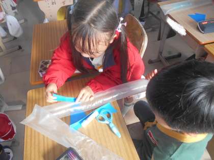 作り方をわかりやすく説明するための文を書く学習のために実際に「びゅーんロケット」を作っていました。