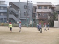 12月3日(水)運動場で元気よく遊んでいます。健康調べの結果を書きに来ています。