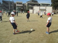 3月4日(水) 2組の体育です。ボールをける練習をしています。
