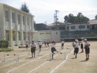 10月14日(火)3組の体育です。ミニハードル走に取り組んでいます。跳んでい...