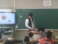 1月15日(木)1組の習字では,小筆を使って文章を書いていました。算数では「分数...