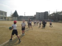 12月1日(月)1組の体育です。5分間走のあと,「ラインポートボール」のゲームに...