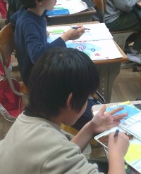 12月12日(金)1組の図工では,へんてこ山のものがたりというテーマで絵を描いて...