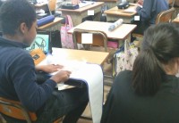 12月22日(月)3組では,修学旅行の思い出を絵巻物にまとめていました。