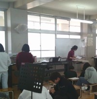 12月19日(金) 1組の家庭科です。家庭科室でエプロンの制作に一生懸命に...