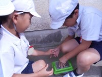 国語では「カタカナ」を使って絵に合う文を作って発表しました。算数はテスト返しをした後,三角形と四角形に仲間分けして「辺」「頂点」という新しい言葉を学習しました。