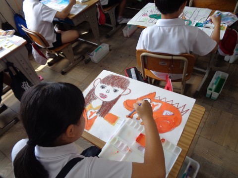 水の分量に気をつけたり,色をまぜたりしながら,素敵な作品を作り上げていました。