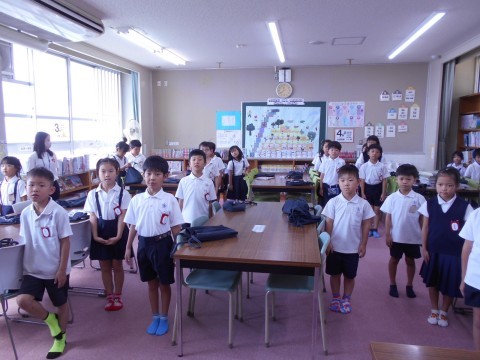 図書室に入る時は靴を揃えて挨拶をします。お友だちの靴を揃えてくれて,よく気が付く優しい児童です。始めと終わりの号令では,しっかりと椅子を中に戻しています。