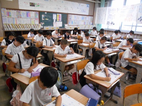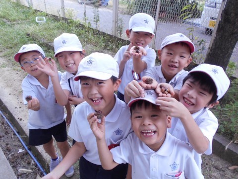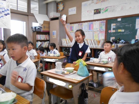 日曜日にお誕生日を迎える児童の「牛乳乾杯‼」の様子。縄跳びを頑張る児童や「秋,見~つけた!」と言ってどんぐりを見せる児童の様子です。書写の時間はご褒美シールがもらえるように丁寧に字を書いています。