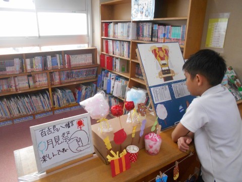 図書室は月見まつりの展示や掲示が残っています。