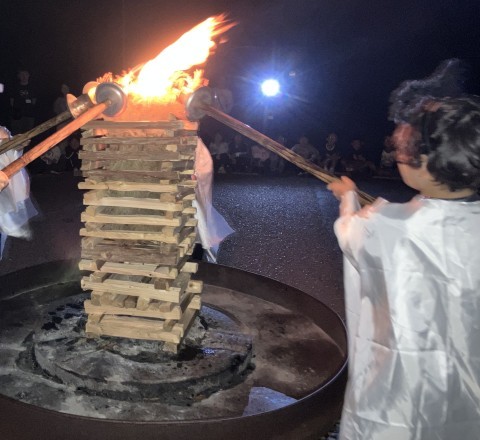 火の神様から火をもらい、キャンプファイヤーをスタートしました。