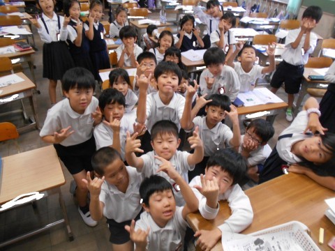 本日,お誕生日のお友だちです。給食時間に牛乳で乾杯をしました。8歳になりました!