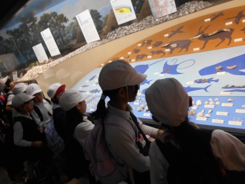 大阪市立自然史博物館では,普段の生活では見ることのできない生き物や植物を見ることができ,大興奮!!ですが,その興奮は心の中だけに・・・静かに二列で館内をまわる姿はさすが三年生でした。