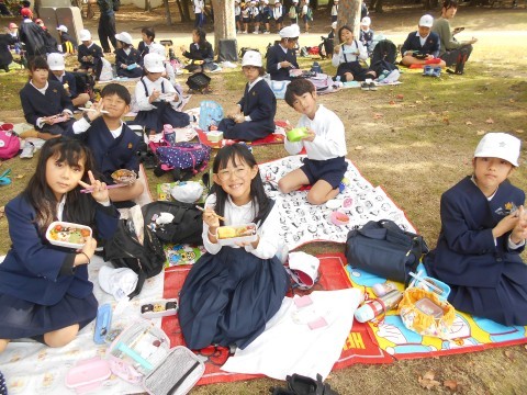 お弁当は長居植物園の芝生広場で!!お互いの食材を紹介し合いながら食べる姿はとても可愛らしかったです。