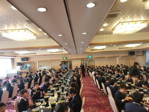朝食です。眠たそうな様子も見られますが、おなかすいたという子も何人かいました。