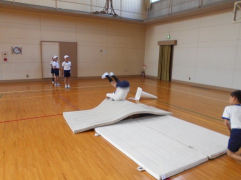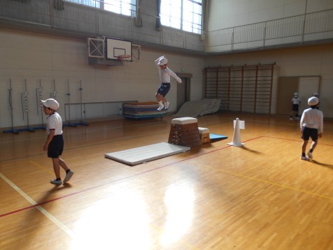 体育館では,跳び箱をしています。
