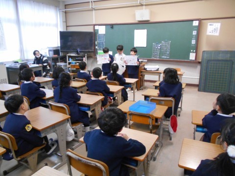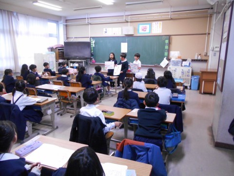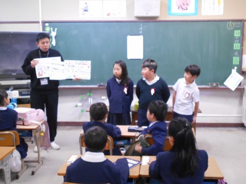 1年生を招待して「おもちゃランド」をするにあたって,クラスの代表が1年生にお知らせするためにポスターを持っていきました。緊張しながらでしたが,しっかり言葉でも伝えることができました。