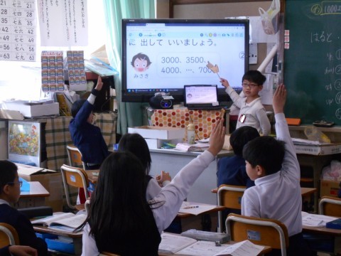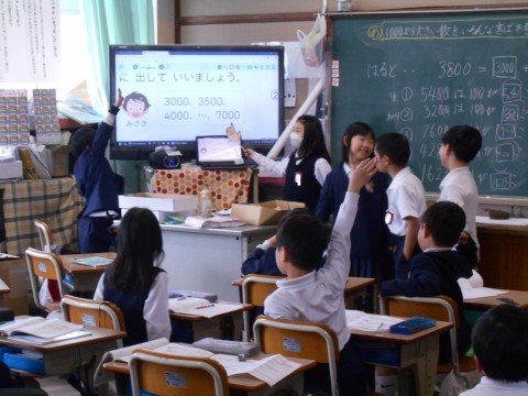 算数「1000より大きい数」で「どんな数といえるか」考えて,いろいろな表し方を発表しました。