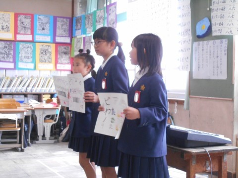「できるようになったよ はっぴょう会」をしました。今日に向けて頑張ってきました。残念ながら欠席で発表できなかった児童もいましたが,みんな緊張しながらもやりきりました。