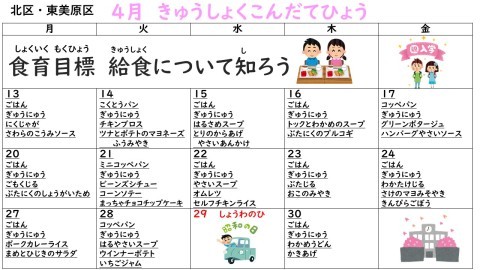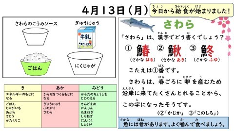 今年度の給食が始まり,1年生は15日(水)から始まります。