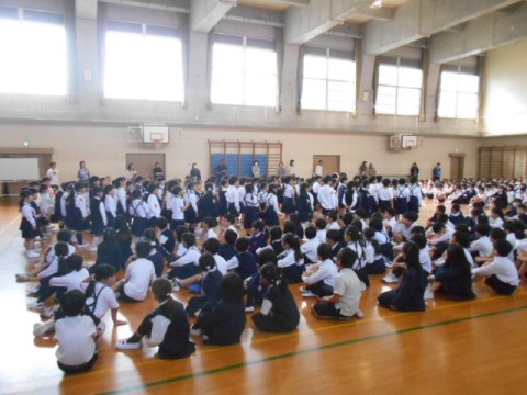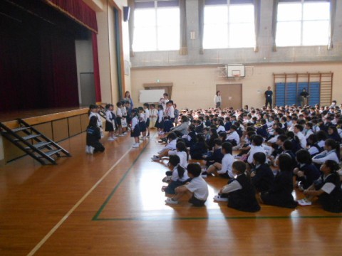 1年生には、6年生からのペンダント、2年生からはアサガオの種が送られました。