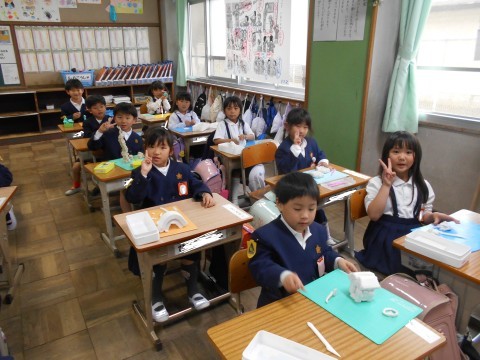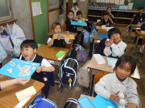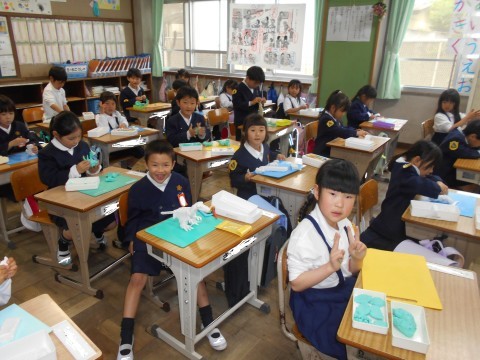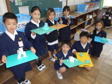 図工で粘土をつかっていろんなものを作りました。恐竜の爪まで丁寧に作った児童もいました。