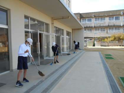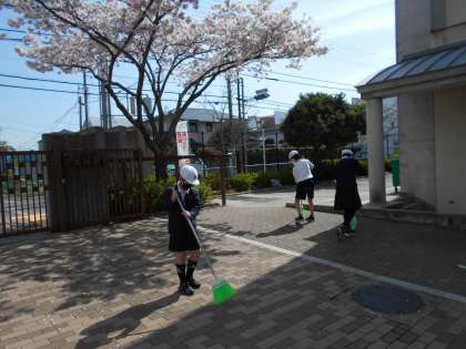 各分担場所に分かれて,掃除をしています。新1年生を迎える準備をしています。