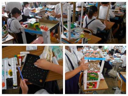「ころころコロガーレ」という立体迷路をつくってます。ビー球をころがして,ゴールをめざします。トンネルや橋など工夫してつくっています。