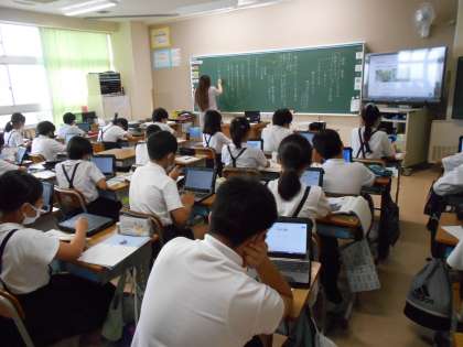 自然を大切にするためにできることは何かを考えています。パソコンを使って,自然を大切にする活動について調べていました。