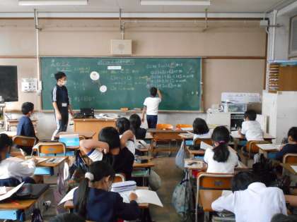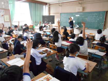 小数の学習です。学習のめあては「2.8の小数をいろいろな見方で表そう」です。小数をいろいろな見方で考え,たくさんの表し方を発表していました。
