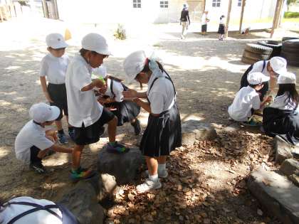 生活科「なかよくなろうね小さなともだち」の学習では,学校内にいる生き物を探しました。班で協力をして,バッタやダンゴムシを見つけることができました。