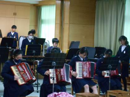 ファイナルコンサートの練習に取り組んでいます。パートごとに分かれて練習したり、全体で合わせて合奏したりしました。全体で合わせるとすごく迫力があり、とても感動しました。まだ練習時間はあるので一生懸命取り組んで素敵なファイナルコンサートにしましょう♪