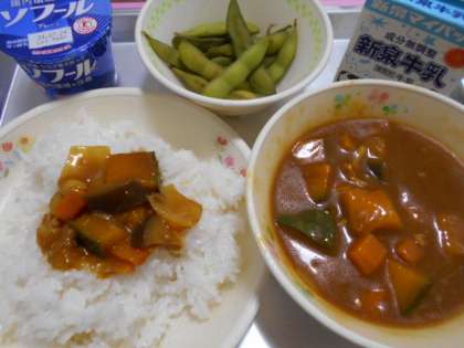今日は、夏野菜カレーライス・枝豆・ヨーグルトが出ました。