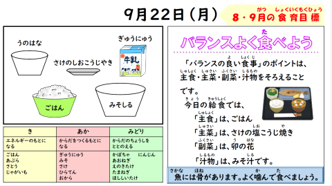 今日の給食 9月22日(月)