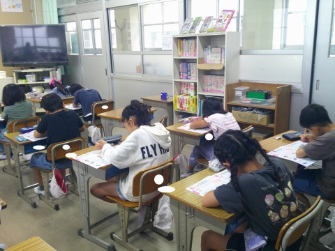 1組では,ローマ字の学習をしていました。2組では,国語「ちいちゃんのかげおくり」の範読を聞いていました。