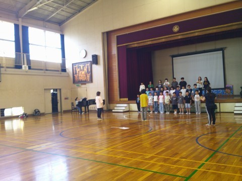 連合音楽に向けて,体育館で練習をしていました。並び方を確認した後,みんなで合唱をしていました。歌詞がよく届き,素敵な歌声になっています。本場まであと少しですね。響きのある歌声目指して,練習をしていきましょう。
