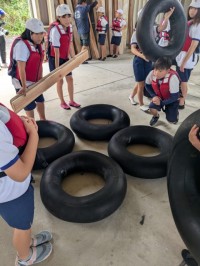 無事到着して入館式を行いました!バスでは雨が降っていましたが、現在はやんでいます!