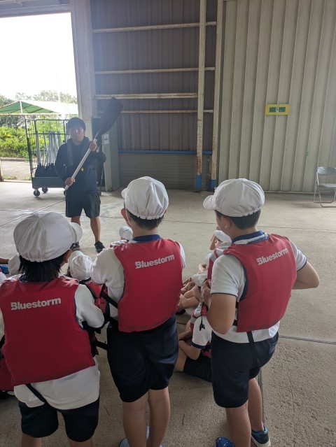 苦労しましたが何とか完成しました!漕ぎ方の説明を聞いて海にでていきます!