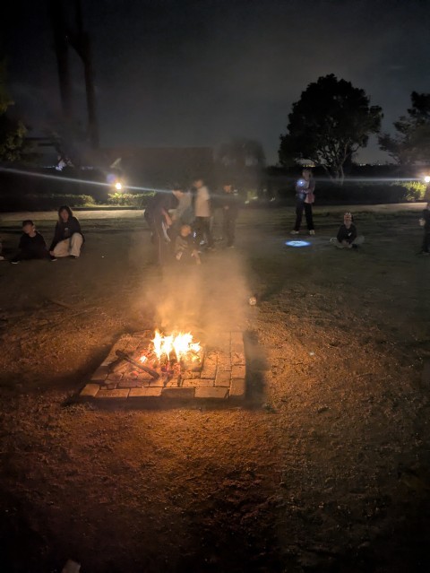 心配された天気ですが、雨が降っていないので無事キャンプファイヤーをしています!