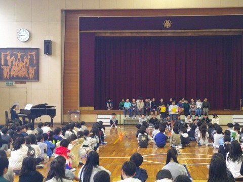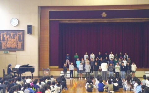 連合音楽会を明日に控えた5年生。今日は,今までの練習の成果を発揮して合唱を全校の前で披露しました。柔らかな美しい歌声が体育館に響き,各学年からよかったところや励ましの言葉を発表してもらいました。5年生の皆さん,今まで練習を積み重ねてきた自分と仲間を信じて,心と歌声を一つにして,音楽を楽しんできてくださいね!