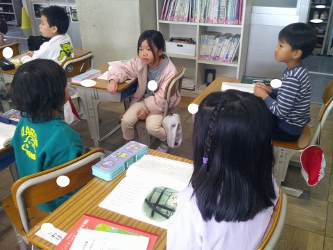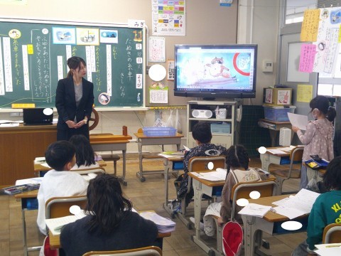 2時間目に国語「たぬきの糸車」の研究授業を行いました。お話の世界の浸りながら,想像力を働かせて楽しみながら読み進めている1年生。冬の間に,たぬきがしたことや思っていることを本文にそって豊かに想像していました。たくさんの先生方が参観に来ていたので緊張したと思いますが,生き生きと自分の考えを発表することができました。
