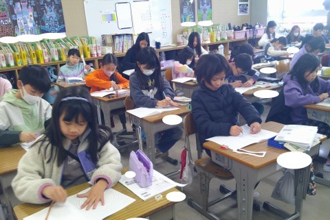 算数では,方眼紙を活用していろいろな大きさの丸い形をかくことに挑戦していました。