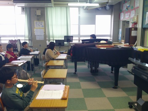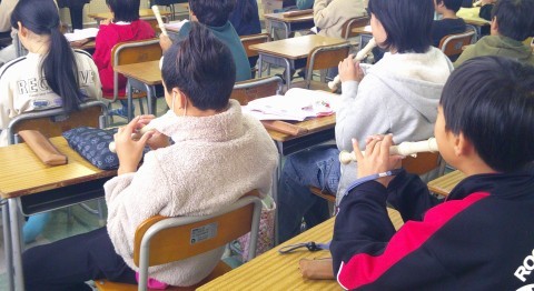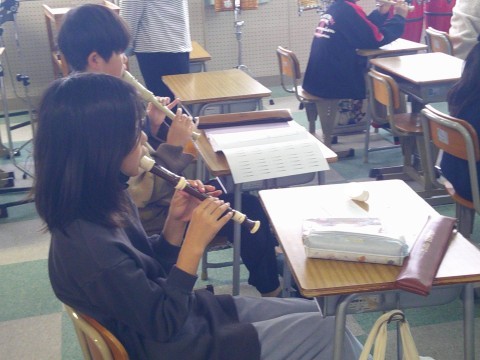 音楽では,「威風堂々」という曲をリコーダーで演奏していました。高いファの音や♯ファの音を出すのが難しそうでしたが,頑張って練習していました。