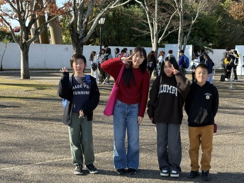 スペイン村に到着しました!開園まで、グループ写真を撮って待っています!