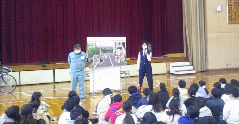 『路側帯』など少し難しい言葉が出てきましたが,みんな話をしっかり聞いていました。