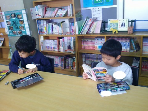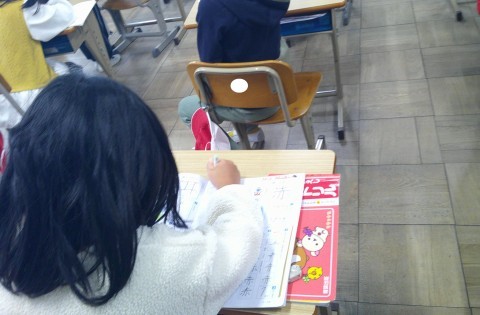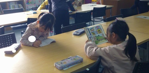 図書の時間では,本をじっくり読んでいました。国語時間では,漢字練習を頑張っていました。